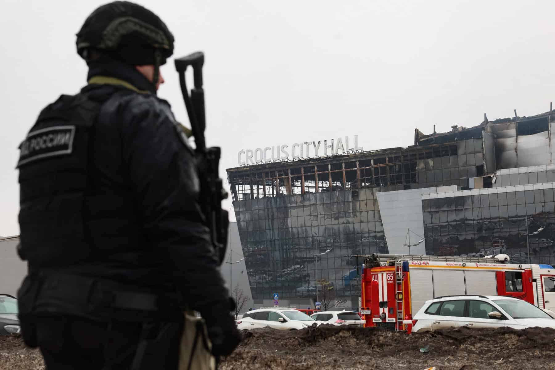 من جهته، قال الرئيس الروسي فلاديمير بوتين في خطاب متلفز إن المسلحين الأربعة الذين نفذوا الهجوم على صالة كروكوس في ضاحية كراسنوغورسك شمالي غربي العاصمة قد اعتقلوا قبل أن يتمكنوا من عبور الحدود إلى أوكرانيا.