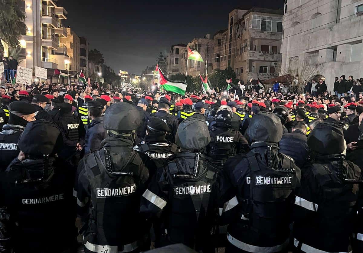 الشعب الأردني يحاصر سفارة الاحتلال في عمّان رغم القمع الأمني ..
