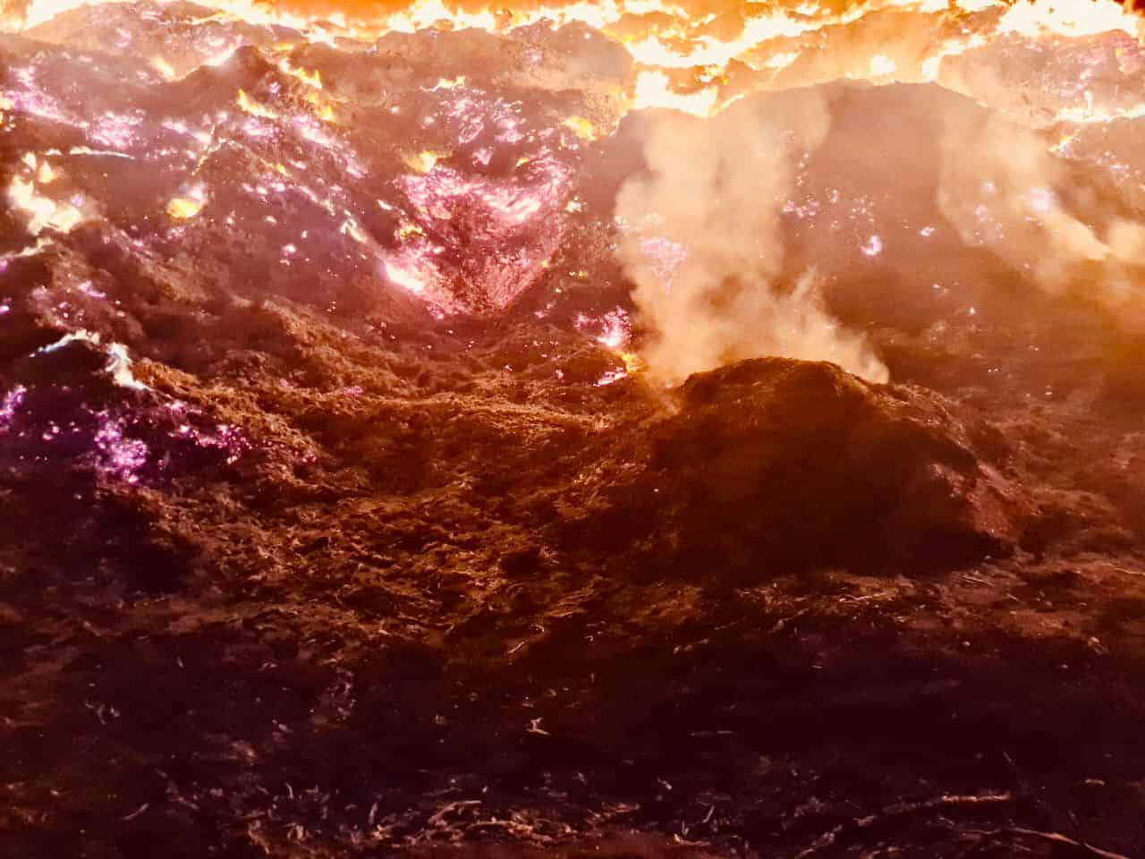 وتسبب الحريق المروع، في التهام خمسة أفدنة، في المزرعة المخصصة لإعادة تدوير المخلفات الزراعية.