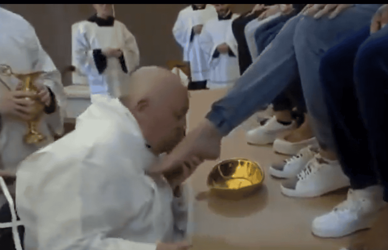 وطن – قام البابا فرانسيس بغسل وتقبيل أقدام 12 سجينة في أحد سجون روما خلال طقوس الخميس المقدس، التي تهدف بحسب الكنيسة إلى التأكيد على دعوته للخدمة والتواضع، بينما أثار المشهد جدلا واسعا عبر مواقع التواصل.