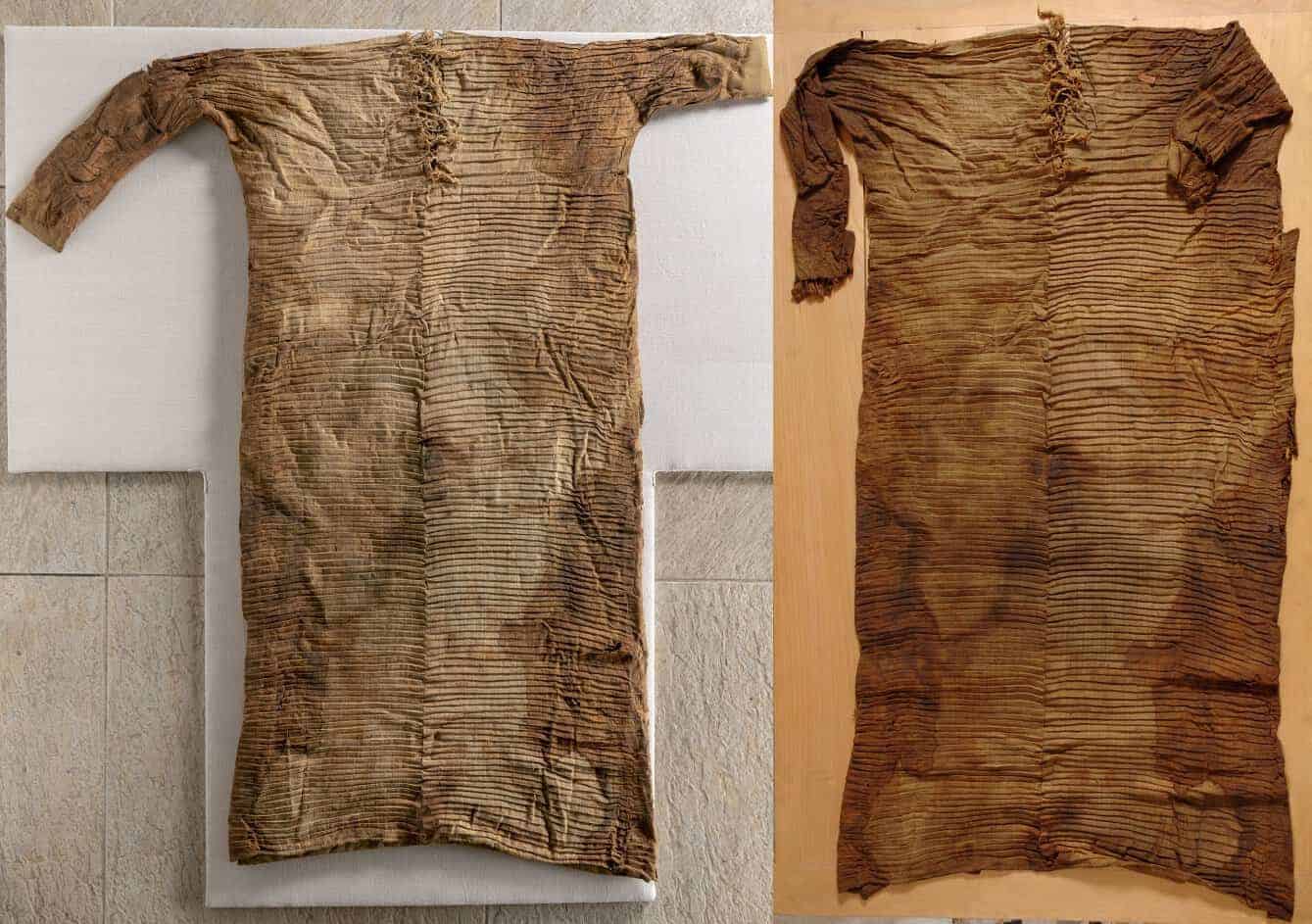 وقد عثر على هذا الرداء مطوياً إلى جانب رفات صاحبه.