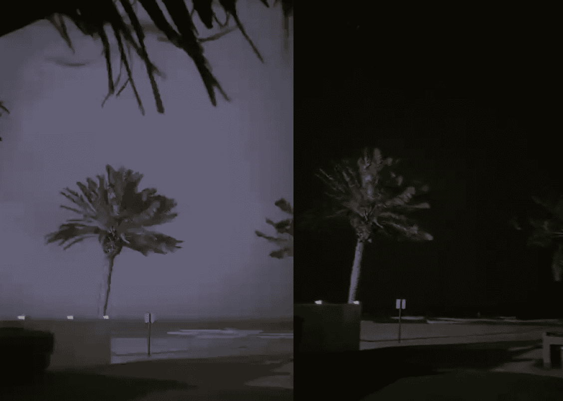 وبدا في مقطع ثالث بداية تأثير الحالة الجوية على منطقة سيلين في قطر حيث بدا البرق والرعد يعصفان بالمكان، فيما تتمايل أشجار النخيل جراء الرياح الشديدة.