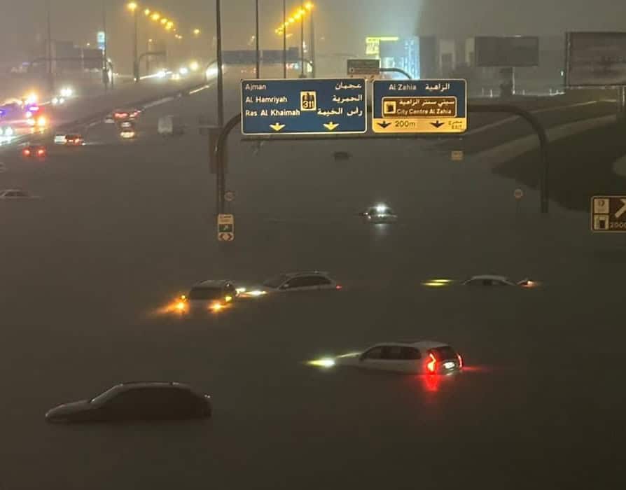 غرق شوارع دبي نتيجة الأمطار الغزيرة المصاحبة لمنخفض المطير