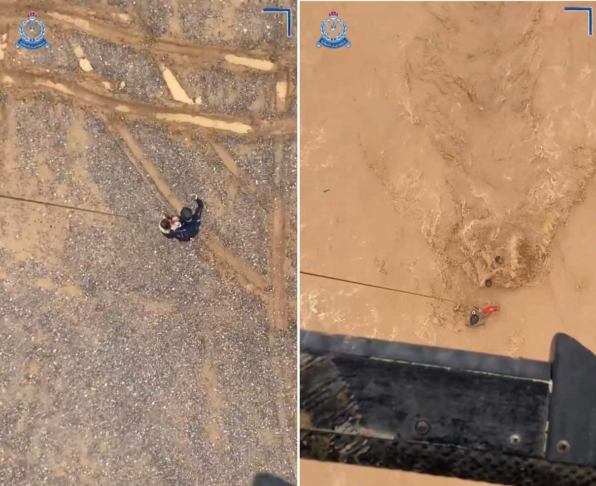 وأظهرت المشاهد التي نشرت عبر الصفحة الرسمية لشرطة عمان السلطانية على منصة “إكس“، عمليات الإنقاذ لعدد من المحاصرين الذين كانوا وسط مياه السيول، فيما جرى نقل بعضهم إلى المستشفيات.