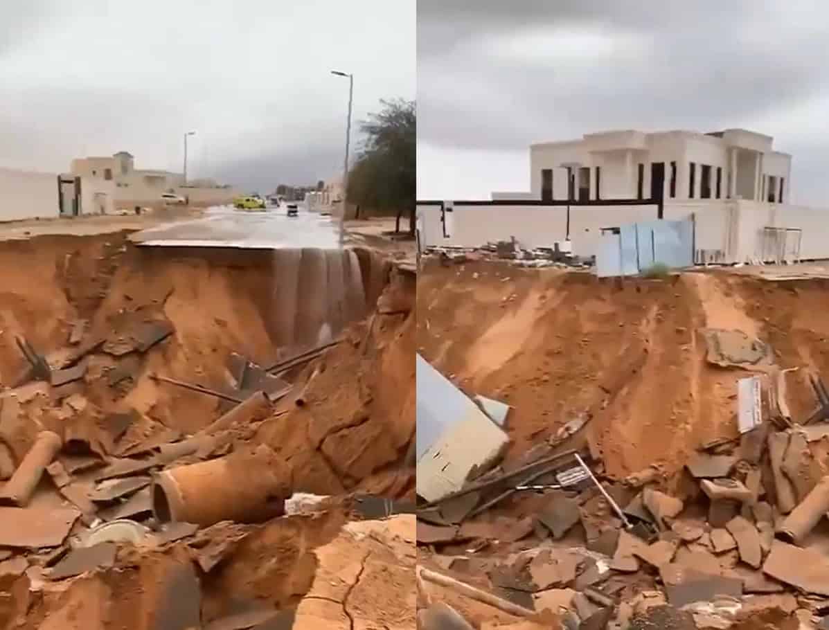 هبوط أرضي في العين الإماراتية نتيجة الأمطار الغزيرة