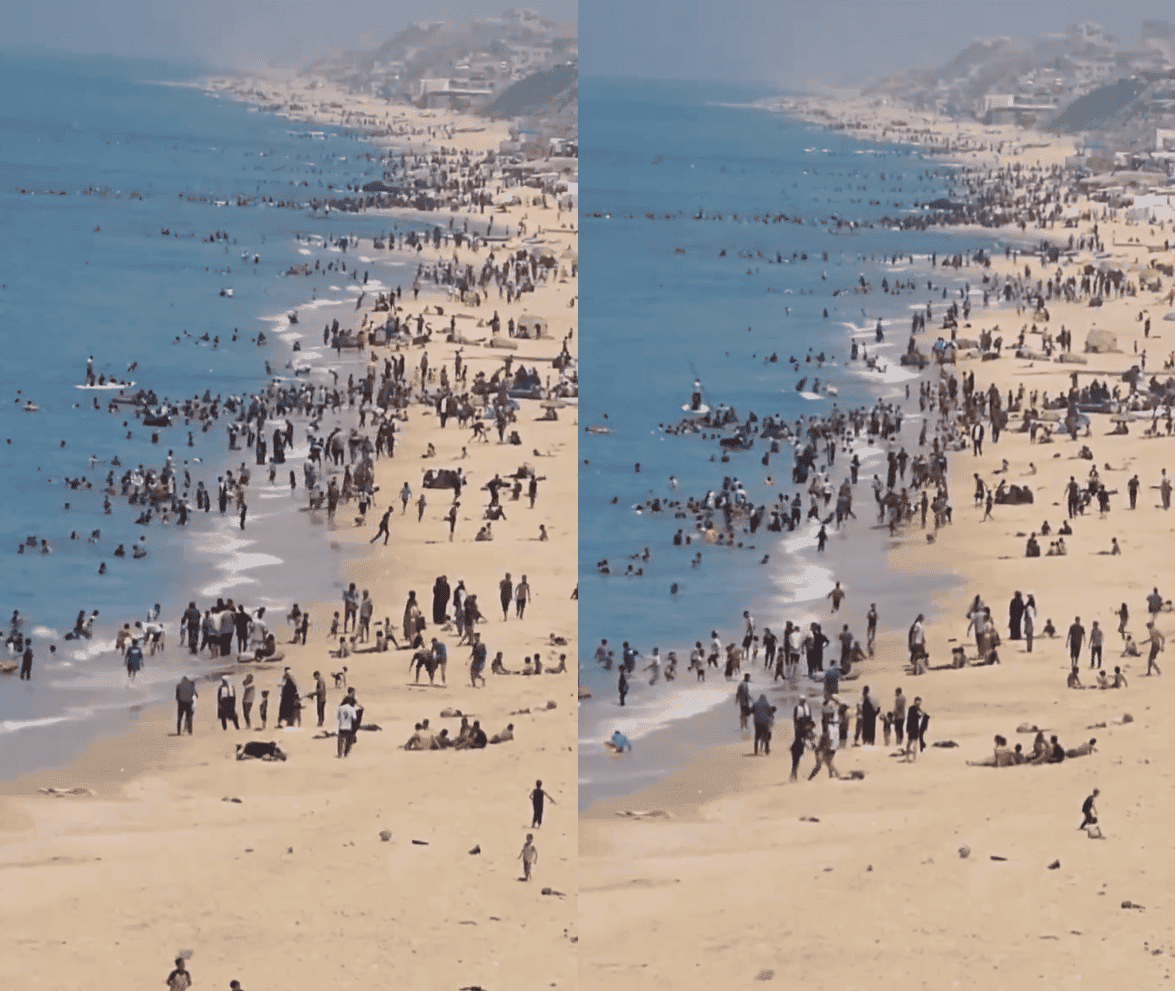 وأشارت الصحيفة إلى الفيديو الذي انتشر، الأربعاء، واصفة إياه بغير العادي من دير البلح، وتظهر فيه حشود من سكان غزة يستغلون الحر ويستحمون في البحر أثناء الحرب.