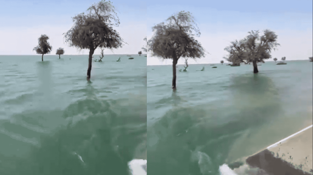 وأظهر مقطع الفيديو المتداول منطقة صحراوية تحولت إلى ما يشبه النهر، فيما شوهدت أشجار وقد غمرت إلى منتصف جذوعها بالسيل فيما بدت الرياح تعصف بها وتكاد تقتلعها من جذورها.