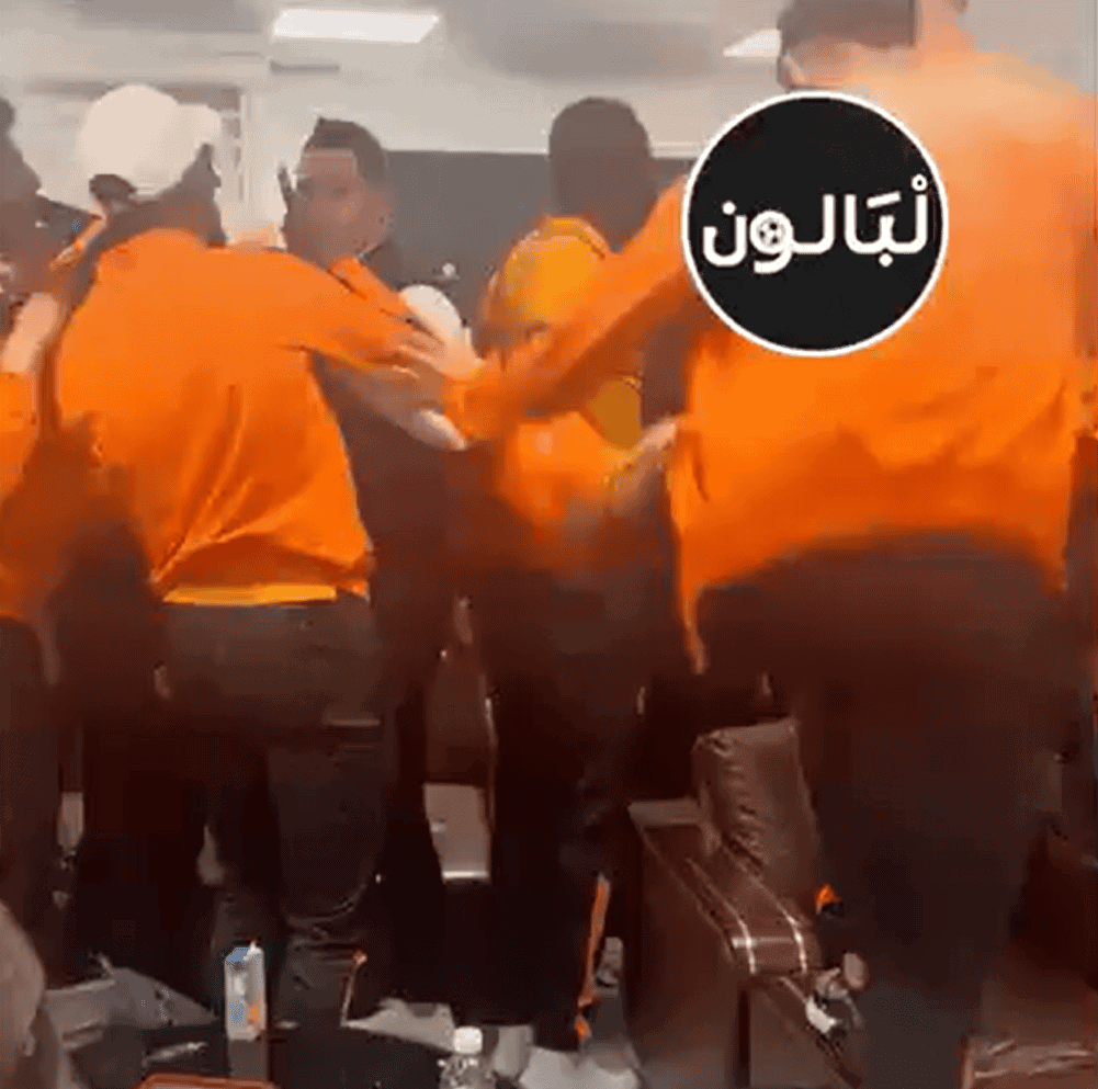 وأظهر مقطع فيديو تم تداوله عبر مواقع التواصل الاجتماعي عدداً من أعضاء الفريق المغربي بلباسهم البرتقالي وهم يتلاسنون مع أمن المطار داخل قاعة مغلقة.