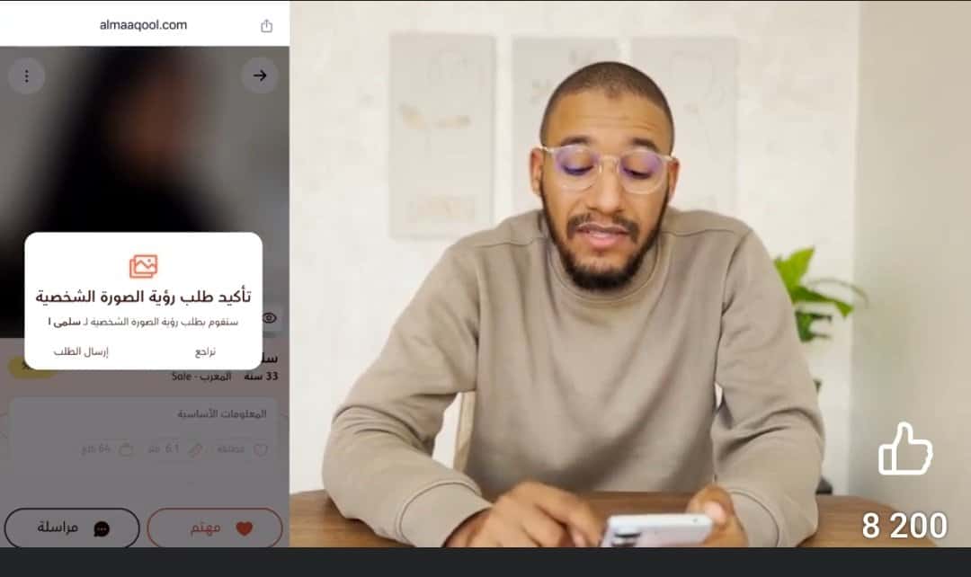 وانتشر فيديو للناشط المغربي على مواقع التواصل الاجتماعي” إلياس الخريسي” الملقب بـ “الشيخ سار” أثار فيه جدلاً واسعاً بعد إطلاقه تطبيقاً خاصاً بـ”التعارف الحلال” باسم ” المعقول” على منصتي الأندرويد والآيفون