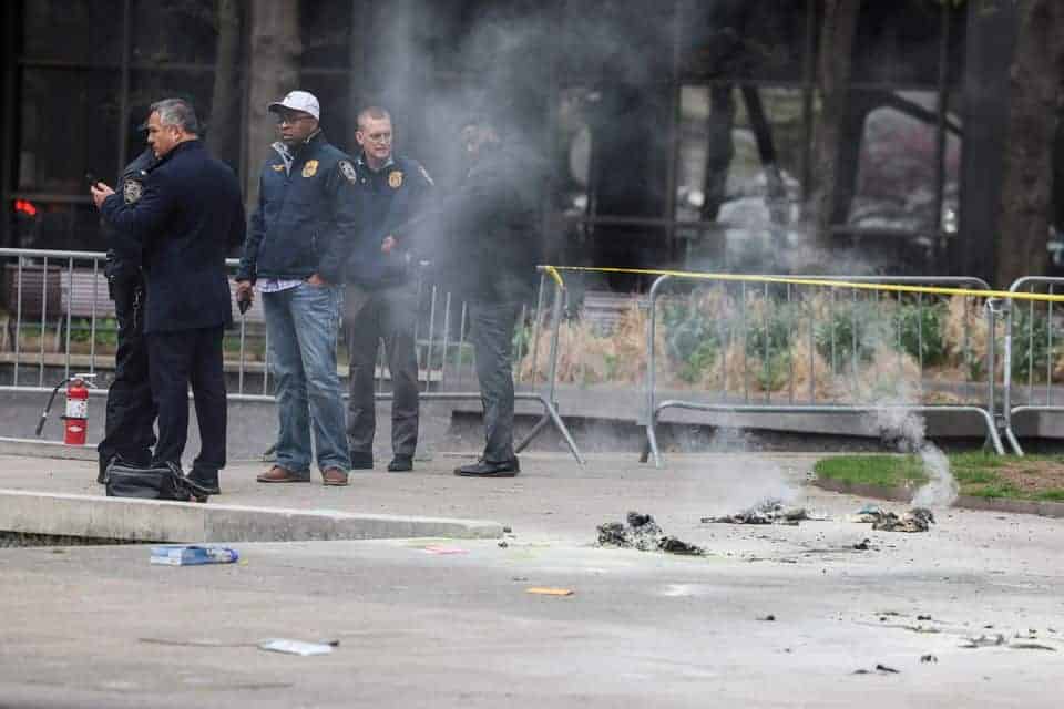 يأتي هذا فيما قال متحدث باسم شرطة نيويورك إنّ رجلًا أضرم النار في نفسه خارج المحكمة. وأضاف أن الشرطة تجمع معلومات في المكان.