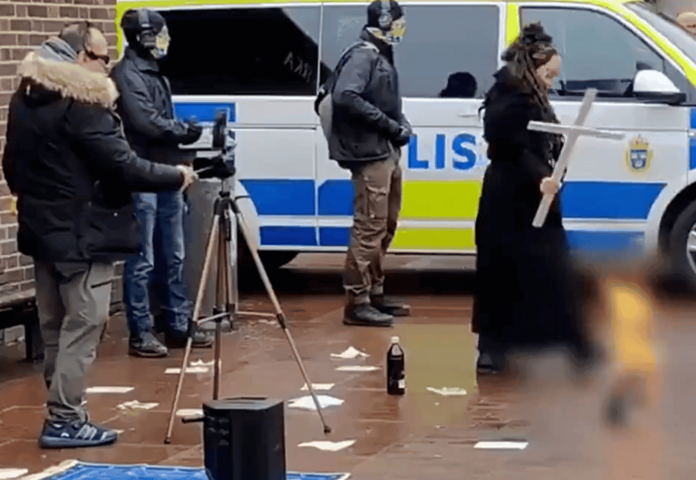 وبحسب الفيديو الذي نشرته قناة “خبر ” التركية استخدمت المرأة المتطرفة مكبر الصوت للدعوة إلى حظر الإسلام في أوروبا أثناء تصرفها الاستفزازي، وألقت خطابا مناهضا للإسلام في الميكروفون وحملت صليبًا مصنوعا من شريحتين خشبيتين فوق نسخة القرآن التي أحرقتها، فيما شوهدت سيارة شرطة سويدية تقف إلى جانبها.