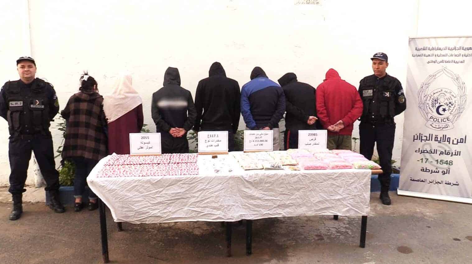 وكانت “الشرطة الجزائرية” قد ذكرت على حسابها في موقع “إكس”-تويتر سابقاً أن شرطة العاصمة أطاحت بشبكة إجرامية منظمة تتكون من (7) أشخاص، مختصة في الاتجار بالمخدرات الصلبة وتحجز 23985 قرص من المخدرات الصلبة، 2055 كبسولة من المؤثرات العقلية، كمية من المخدرات، مبلغ مالي وتسترجع مركبة ودراجة نارية.