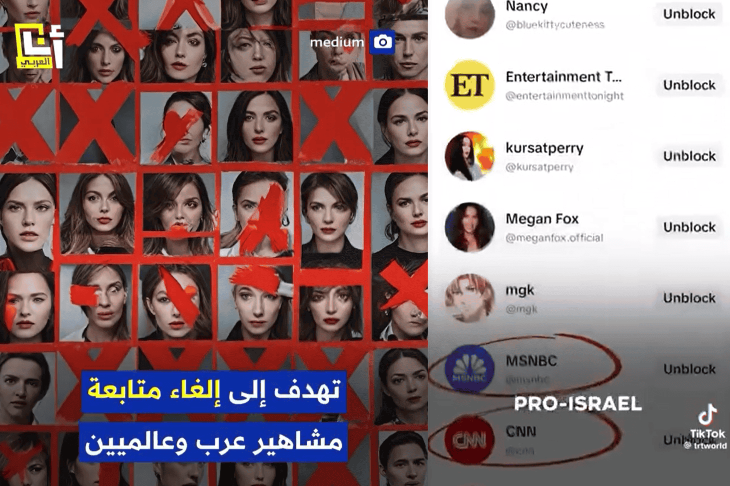 وبحسب تقرير مصور “للتلفزيون العربي” تهدف الحملة إلى إلغاء متابعة مشاهير عرب وعالميين صمتوا عن دعم غزة وأهلها الذين يتعرضون لإبادة جماعية.