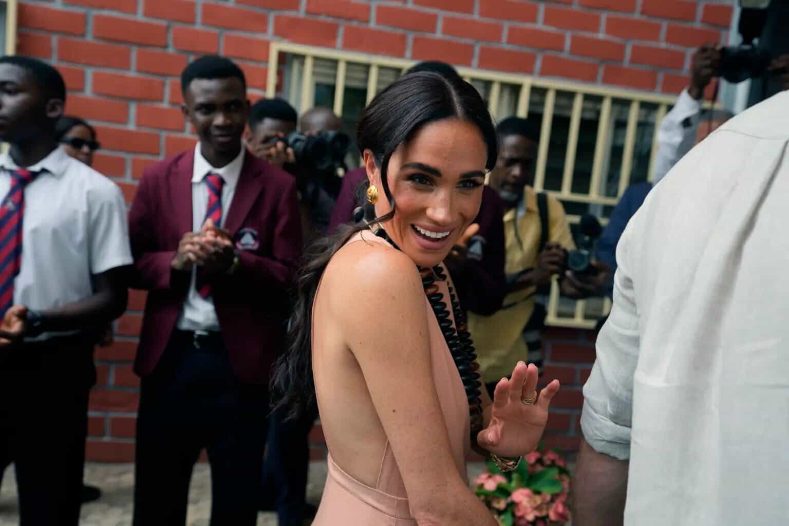 وطن – أثارت دوقة ساسكس ميغان ماركل حالة واسعة من الجدل، على مواقع التواصل الاجتماعي، إثر ظهورها في نيجيريا بفستان من مصمم يحمل اسم العائلة المالكة في بريطانيا “ويندسور”.
