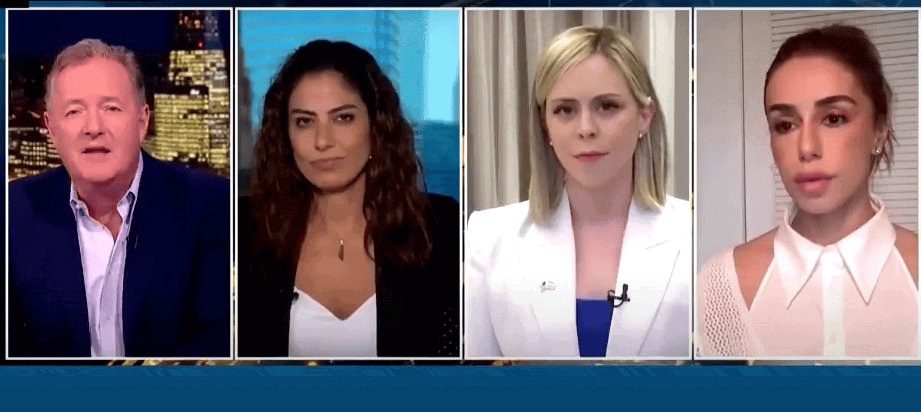 وطن – أحرجت صحفية أمريكية لبنانية الأصل المذيع البريطاني بيرس مورغان، وضيوفه الإسرائيليين ووضعتهم في الزاوية الضيقة خلال برنامج Piers Uncensored، الذي يقدمه الإعلامي البريطاني.