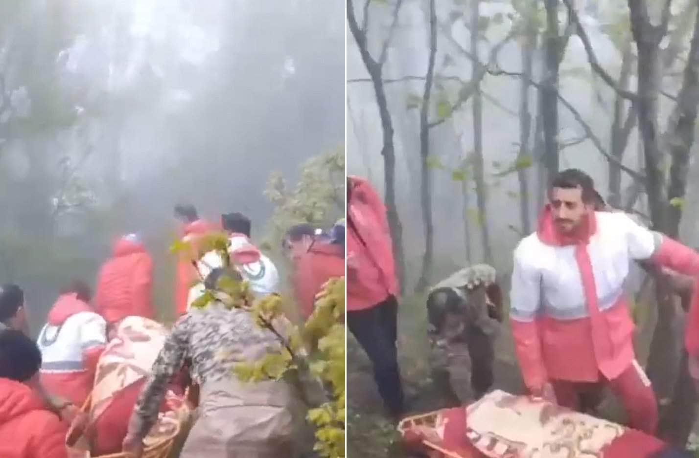 وكانت فرق الهلال الأحمر الإيراني، وفرق من الحرس الثوري، وصلت إلى المكان، عقب تحديد نقاط تنبعث منها الحرارة، التي تحطمت فيها المروحية الرئاسية.