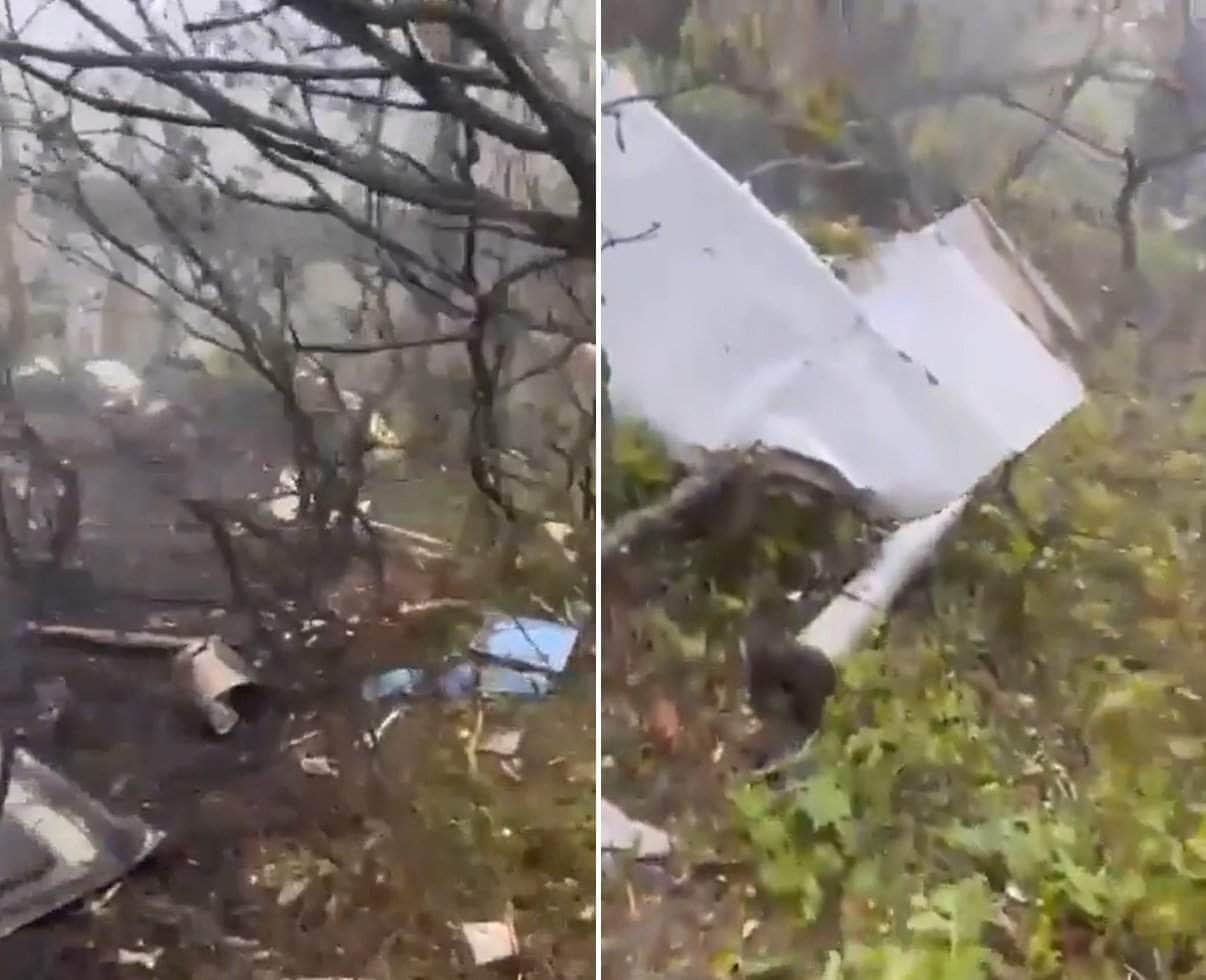 وفي مقطع الفيديو الذي تم تداوله على صعيد واسع، وبثته منصات إعلامية، يأتي المصور من بعيد، ويلتقط صورا تُظهر أثار حريق في قطع الطائرة المحطمة، ويخفي ما بدا أنها جثث لراكبي الطائرة.