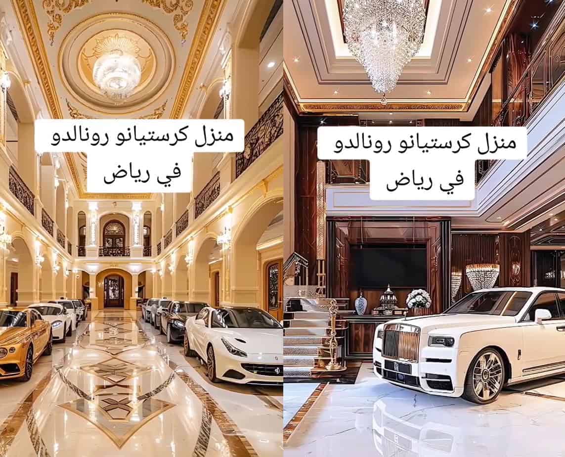 ويظهر في المقطع 8 سيارات فارهة، مركونةً داخل القصر الفاخر الذي ادّعت الحسابات أنه يعود للنجم رونالدو في السعودية.
