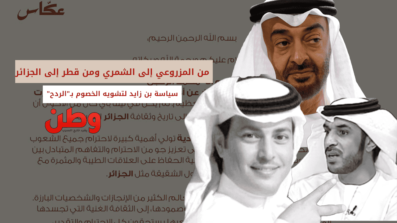 أنت الآن تتصفح:الرئيسية » تقارير » من المزروعي إلى الشمري ومن قطر إلى الجزائر… سياسة بن زايد لتشويه الخصوم بـ”الردح”