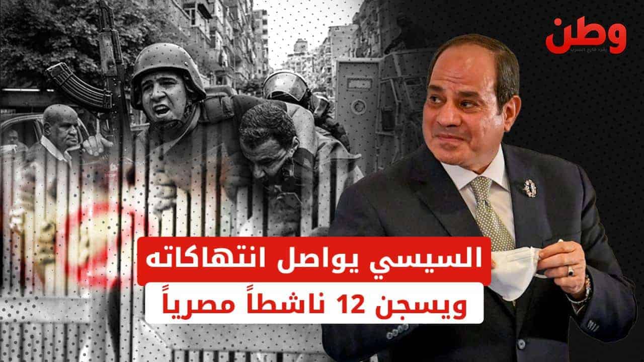 وطن – أمرت نيابة أمن الدولة العليا في مصر بحبس 12 ناشطاً، بينهم فنان تشكيلي شهير، لمدة 15 يوماً لاستكمال التحقيقات معهم. النشطاء يواجهون تهماً متعددة منها الإرهاب، بث أخبار كاذبة، إساءة استخدام وسائل التواصل، والتمويل والترويج للعنف.