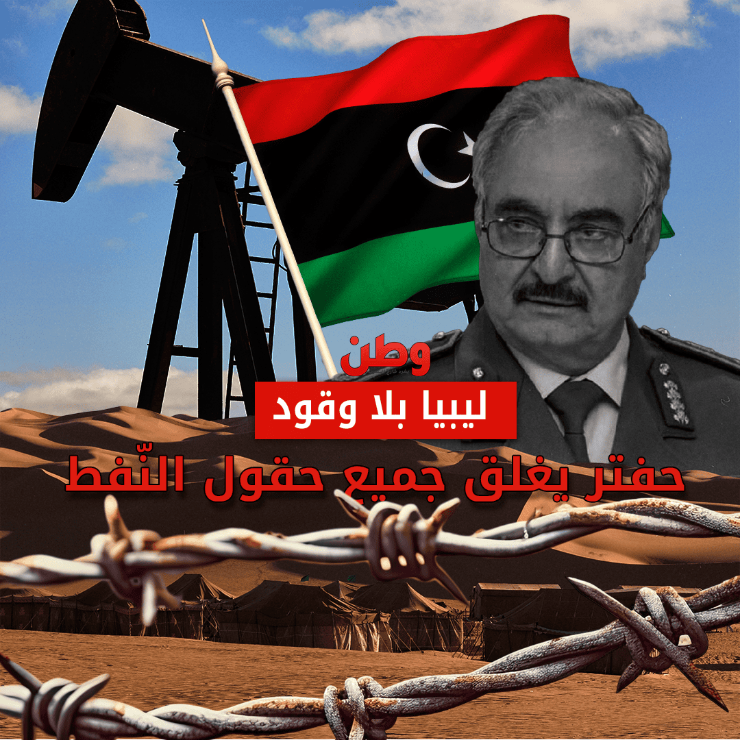 وطن – في خطوة تصعيدية جديدة، أعلنت حكومة المشير خليفة حفتر غير المعترف بها دوليًا، والتي تحظى بدعم إماراتي ومصري قوي، إغلاق جميع حقول النفط في البلاد وتعليق عمليات التصدير إلى أجل غير مسمى.