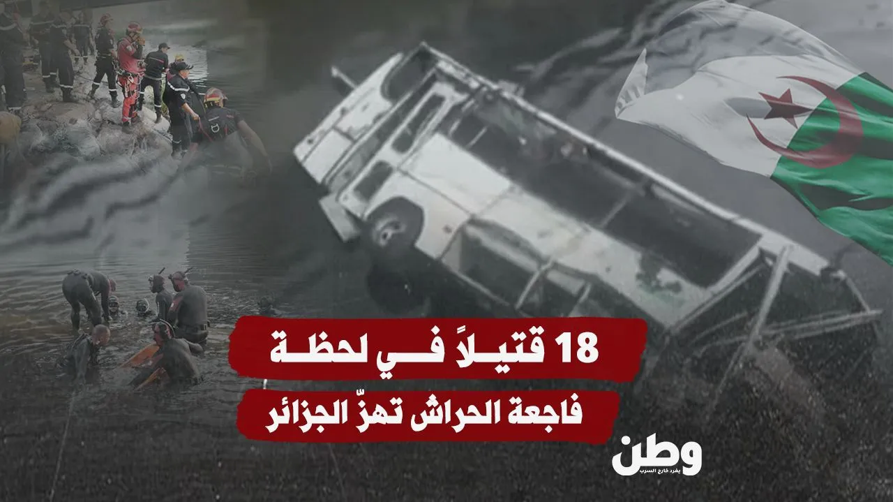 في مشهد مؤلم هزّ الشارع الجزائري، لقي 18 شخصًا مصرعهم وأُصيب 9 آخرون، اثنان منهم في حالة حرجة، إثر سقوط حافلة من على جسر نحو مجرى وادي الحراش بالعاصمة الجزائر مساء أمس.