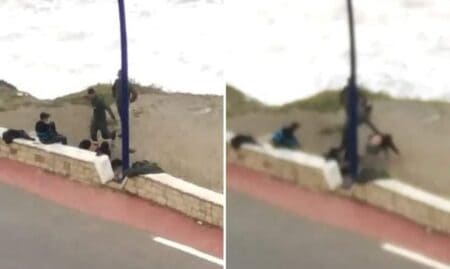 فيديو صادم يظهر اعتداء عنيف من عنصر أمني على مهاجر سري في الفنيدق يثير غضباً واسعاً في المغرب. الداخلية تفتح تحقيقاً في الحادثة.