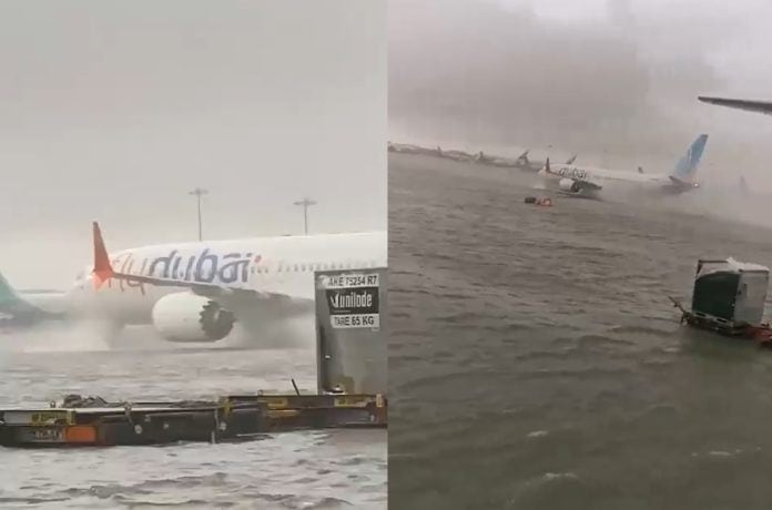 تداول مغردون بمواقع التواصل الاجتماعي، مشاهد صادمة وغير مسبوقة، تظهر غرق مطار دبي بدولة الإمارات، نتيجة الإمطار الغزيرة التي هطلت على البلاد جرّاء تأثرها بمنخفض جوي.…