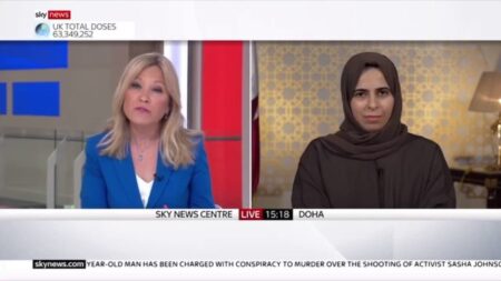 وطن- تداول ناشطون بمواقع التواصل مقطعا مصورا وثق جزء من حديث مساعدة وزير الخارجية القطري والمتحدث الرسمي باسم الوزارة لولوة الخاطر، مع مذيعة (سكاي نيوز) الإنجليزية…