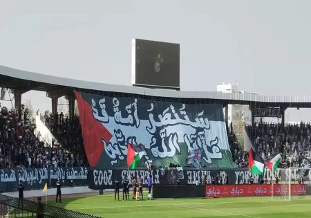 رياضة 5 نوفمبر، 2023“ستنتصر أمة قد عزها الله بالدين”.. تيفو جماهير الصفاقسي التونسي تضامناً مع فلسطين (صور) وطن- رفعت جماهير الصفاقسي التونسي العديد من اللافتات الضخمة داخل مدرجات ملعب ” الطيب المهيري”، الأحد، تضامناً مع فلسطين، إثر الحرب الإسرائيلية على قطاع غزة الأعنف…