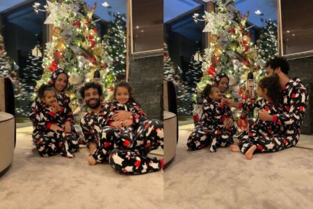 محمد صلاح احتفل بالكريسماس مع زوجته وابنتيه وظهروا بملابس موحدة امام شجرة عيد الميلاد، بينما اثارت صورته جدلاً بين جمهورهز