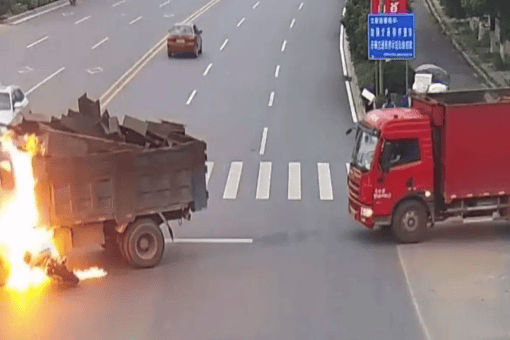 فيديو 13 نوفمبر، 2015نجاة سائق دراجة بأعجوبة من حادث دهس محقق بين شاحنتين ضخمتين على طريق سريع نجا سائق دراجة بأعجوبة من حادث دهس محقق بين شاحنتين ضخمتين على طريق سريع، حيث فقد السيطرة على دراجته لكن الحظ كان بجانبه.