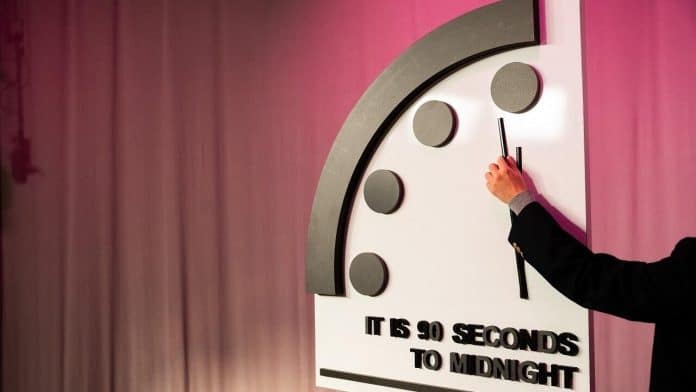 تقارير 24 يناير، 2023تحديث “ساعة يوم القيامة”.. حرب نووية تلوح بالأفق وتحذير من نهاية العالم وطن- أعلنت “نشرة علماء الذرة”، أنها نقلت عقارب الدقائق في “ساعة يوم القيامة” إلى 90 ثانية حتى منتصف الليل، ليوم الثلاثاء 23 يناير الجاري، وفي الأثناء،…