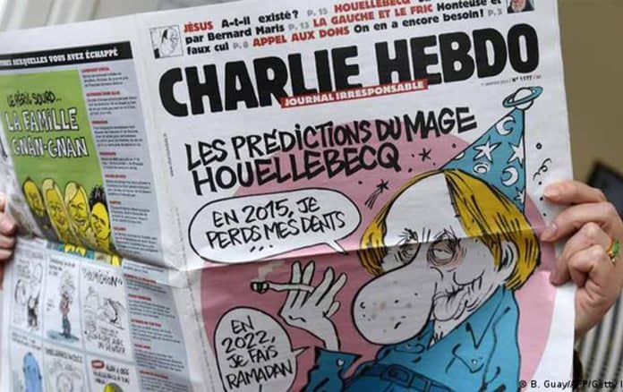 نشرت اسبوعية “شالي ايبدو” الفرنسية على صفحة غلاف عددها الاخير صورا كاريكاتورية تظهر مسلمين عراة بطريقة مسيئة، وذلك وفقا لما اورده اليوم “السبت” الموقع الالكتروني الفرنسي…