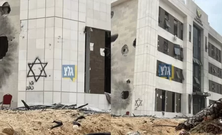 الهدهد 14 نوفمبر، 2023بعد قصفه وتدميره جزئيا.. الاحتلال يلطخ مقر اللجنة القطرية لإعادة إعمار غزة بشعار النجمة (شاهد) وطن- لم يكتفِ جيش الاحتلال بقصف مقر اللجنة القطرية لإعادة إعمار غزة، في القطاع الذي يتعرض لحرب وحشية منذ 39 يوما، لكنّه لطخ المقر بشعار “النجمة”.…