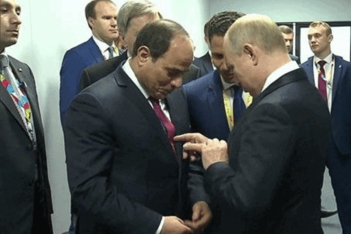 الهدهد 24 أكتوبر، 2019بوتين والسيسي يتبادلان الضحك حول ربطة العنق المتشابهة خلال القمة الروسية الإفريقية وطن – شهد اللقاء الذي جمع بين الرئيس الروسي فلاديمير بوتين، ونظيره المصري عبدالفتاح السيسي، مصادفةً، عندما تبيّن أن كلاهما يرتدي ربطة عنق متشابهة. وأظهر مقطع…
