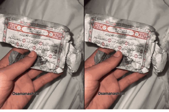 الهدهد 27 مايو، 2024“قصة أصحاب الأخدود”.. ورقة من المصحف وجدت في جيب شهيدة بمجزرة رفح (فيديو) وطن – عثر عناصر الإنقاذ والدفاع المدني في جيب امرأة ارتقت شهيدة في مجزرة رفح، على مصحف صغير احتوى بعد أن طاله الحريق على آيتين كريمتين…